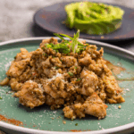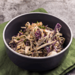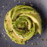 Pollito orgánico de libre pastoreo en salsa dulce natural keto, a base de semillas de sésamo. Acompañado con una porción de aguacate.