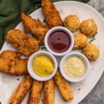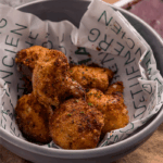 Pollo orgánico de libre pastoreo en bombitas rellenas de mozzarella fundido. Elige tu salsa.