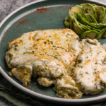 Rellena de pollo orgánico de libre pastoreo, mozzarella y nuestra salsa blanca tipo bechamel 100% keto, elaborada con láminas de zucchini.