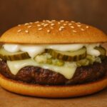 Hamburguesa grass-fed en “pan” 100% keto, con bacon crujiente, queso derretido, pepinillos y nuestra salsa secreta.
