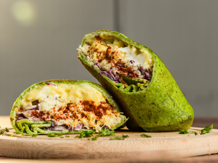 Relleno de pollo, mezcla de quesos, repollo y nuestra salsa secreta mezclada con Honey Mustard hecha sin azúcar ni aceites de semillas. Envuelto en un wrap sin harinas a base de espinaca.