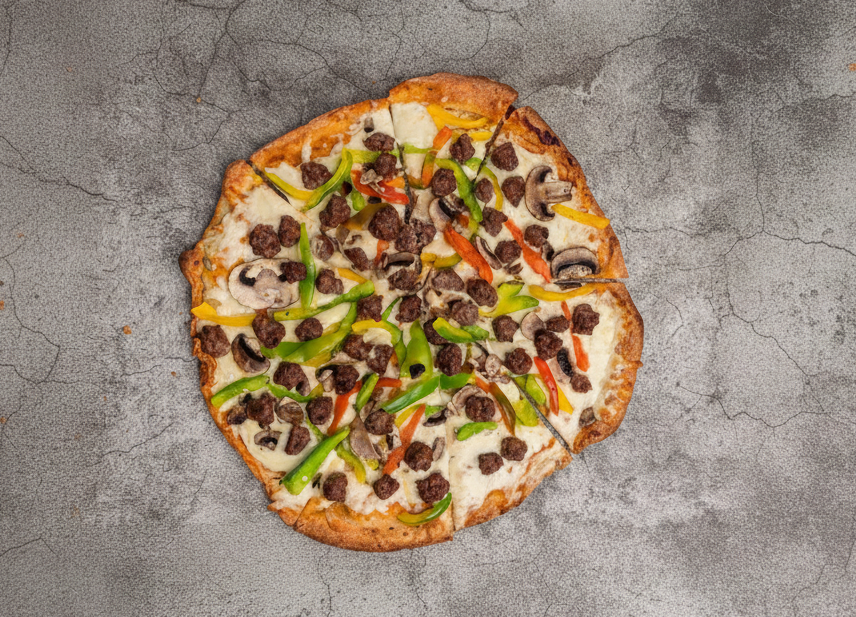 Con carne grass-fed, vegetales salteados y nuestra salsa napolitana. En masa 100% keto a base de harina de almendras.